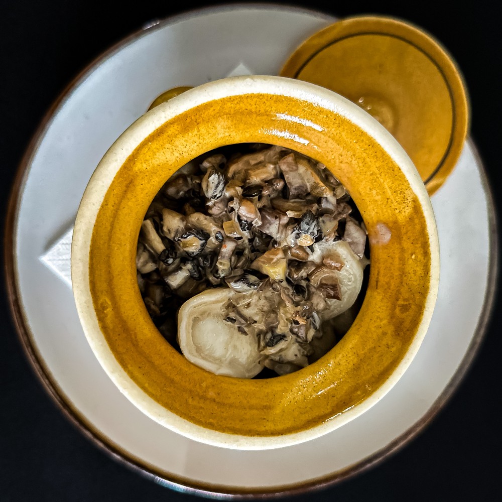 Ошийок тушкований з грибним соусом та картоплею пюре